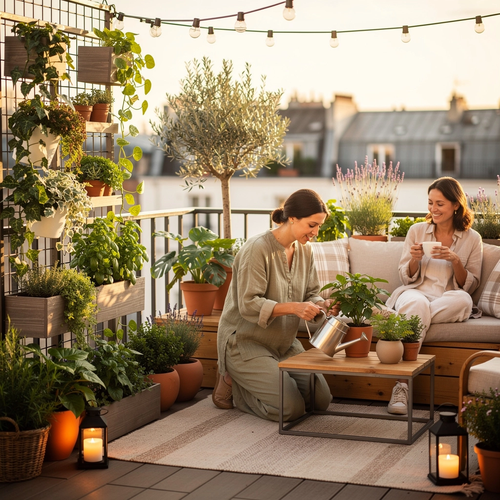 Divisez votre terrasse en zones distinctes : un coin repas avec des plantes aromatiques (thym, basilic, romarin), un espace détente avec des plantes relaxantes (lavande, jasmin), ou un jardin vertical avec des plantes grimpantes (glycines, clématites). Ces zones thématiques structurent l’espace et optimisent son utilisation. Pour une terrasse de 15m², deux zones distinctes (repas et détente) sont suffisantes pour une utilisation optimale de l’espace.